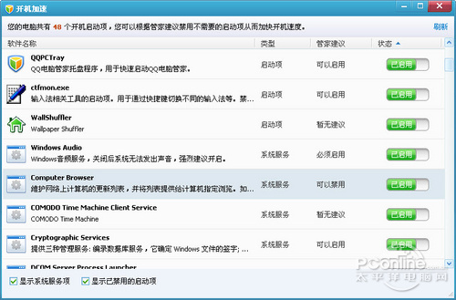 电脑开机缓慢大多是时候都是因为开机时启动了过多不必要的程序所引起的,关闭不必要的自启动程序不仅可以加快开机速度,还能加快系统运行速度。QQ电脑管家的★“开机加速★★★”工具,可以帮助用户清理不必要的开机启动程序。新版增加了对以系统服务及计划任务形式启动的程序的检测与清理★。