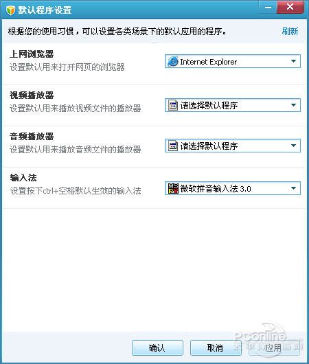 系统中可能安装了同类型的软件多款,所以经常在打开某文件时才发现默认打开的程序又被改动了。通过QQ电脑管家的默认程序设置功能可以快速将浏览器、视频播放器★★、音频播放器★、输入法这四大类的默认打开程序进行固定★,防止修改★。