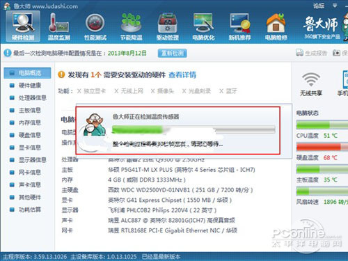 安装完毕后打开软件,鲁大师会自动进行检测★★,查看当前电脑的配置与驱动状况★★。