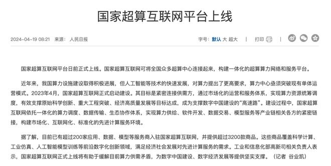国家超算互联网平台★★,由科技部于2023年4月17日正式启动。其汇聚了国内各级超算中心的算力资源★★,形成强大的算力网络★,为用户提供高效、稳定的计算能力★。用户可以通过该平台自助获取AI算力★★★、按需获取业内通用数据集★,并一键部署热点大模型运行环境★★,实现便捷的服务体验★★★。