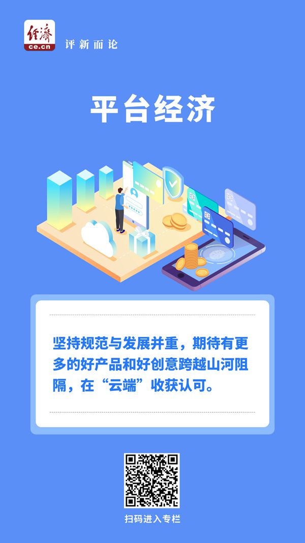坚持规范与发展并重,期待有更多的好产品和好创意跨越山河阻隔,在★★★“云端”收获认可★★★。(中国经济网评论员 子房先生)